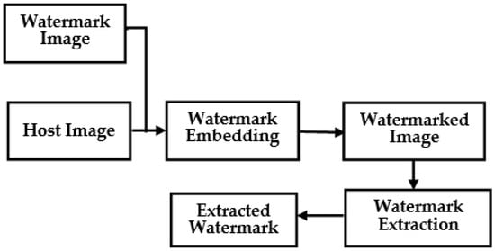 The method that has been proposed is presented in this section, and it is bifurcated into two primary phases. In one phase, a watermark embedding is done, and in the other phase, an extraction of a watermark is performed. To be more specific, the proposed method’s pipeline is shown in Figure 1 to provide a visual representation of the process flow. While the first phase involves embedding the watermark into digital content, the second involves recovering the embedded watermark from watermarked content.