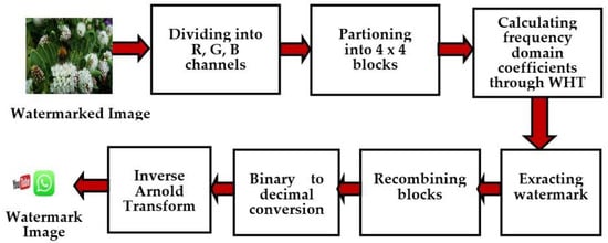 Flowchart illustrating the proposed watermark extraction process, outlining the steps involved in extracting the watermark from the watermarked image.