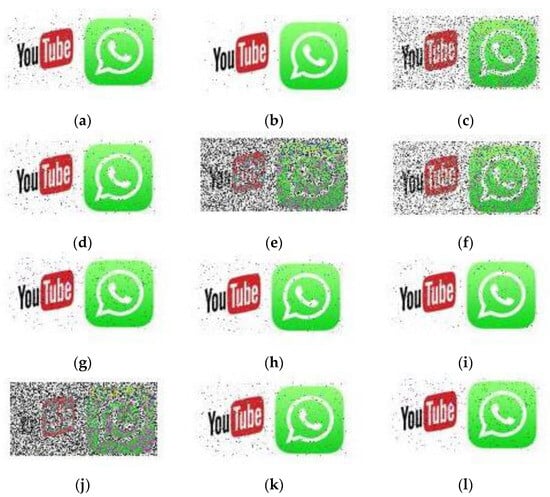 To showcase the efficacy of our proposed algorithm, we conducted a comparison with Siyu Chen’s approach [] and Prabha’s approach [] concerning both robustness and imperceptibility. To ensure a fair evaluation, we applied Siyu Chen’s approach [] and Prabha’s approach [] to embed the color watermark image from Figure 4p into the color host images shown in Figure 4, using a quantization step size of T = 5, similar to our proposed algorithm. Table 2 provides a comprehensive comparison of imperceptibility levels achieved by our proposed method and existing methods, specifically Chen’s method [] and Prabha’s method []. The results clearly demonstrate that while our approach may show slightly lower PSNR for a few images compared to Chen’s algorithm, it consistently achieves higher PSNR for most images, averaging an improvement of 0.6 dB. In contrast, when compared with Prabha’s method, our algorithm consistently outperforms across all images, showcasing an average improvement of 2.83 dB in PSNR values.