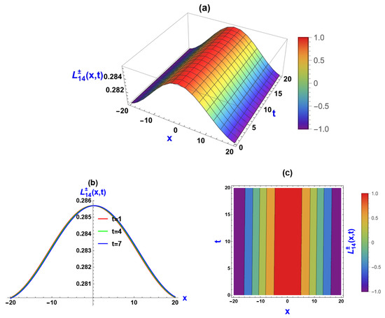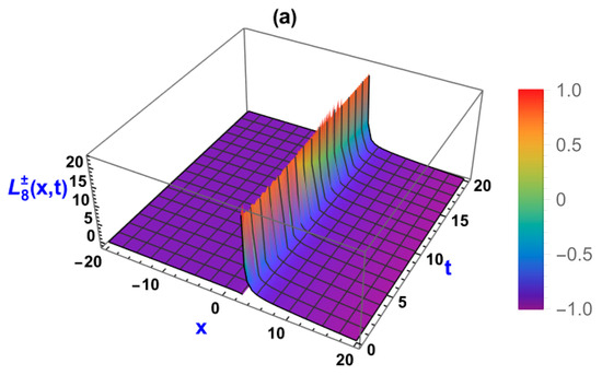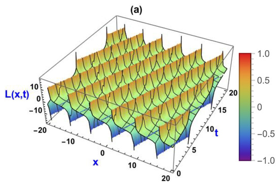 Now, this phenomenon is applied to one of the solutions, such as Equation (39), for the fixed value of (we can choose any real value of ), which yields the following: