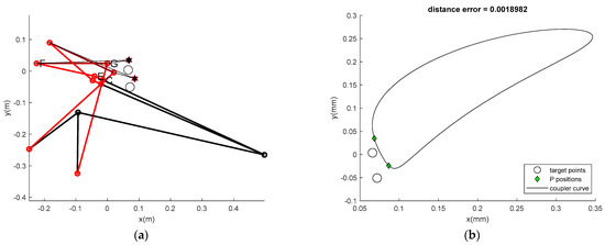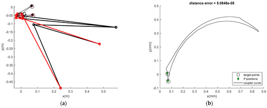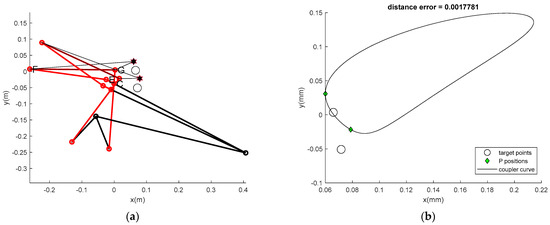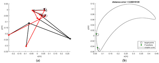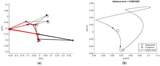 The motion generation of six-bar linkage is presented in (12–19), while the weighting factor is set as mentioned in [37]. The origin of the problem was explained in previous research [37,38].