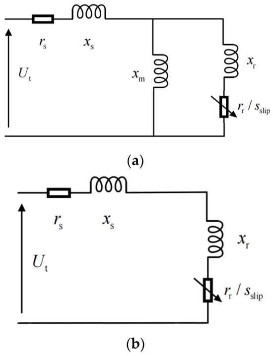 Figure 2. Induction motor mechanical transient time circuit. (a) Induction motor mechanical transient equivalent circuit. (b) Equivalent circuit of induction motor.