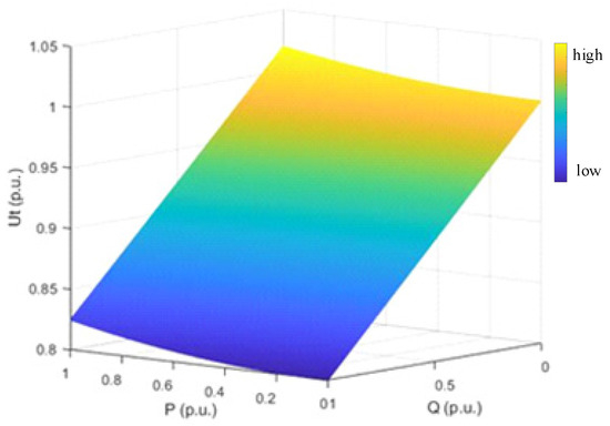 Figure 6. The relationship between reactive power, active power, and node voltage.