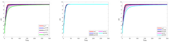Overall, a negative feedback loop between -cells and the body’s basal insulin and glucose concentrations has been established [5,6]. The model proposed by Bajaj and Roa in [3] addressed the role of -cells in regulating plasma insulin levels by Lenbury et al. [7]. The rates , , are determined by the density of the beta cells. This concept of fractional calculus plays a significant role in many branches of mathematics in addition to being important when attempting to model real-world problems [8,9,10,11,12,13,14,15,16,17,18,19,20,21,22,23,24,25,26]. For further information regarding the use of fractional-order differential equations in biological studies, please refer to [27,28,29,30,31,32,33,34,35,36,37,38,39,40]. There are a variety of fractional derivatives with nonsingular kernels proposed for describing nonlocal systems in a more accurate and practical way. These derivatives have been compared to fractional derivatives. Based on the type of function specified by exponentials and Mittag–Leflers [36,37], there are two very plausible possibilities among the existing definitions.