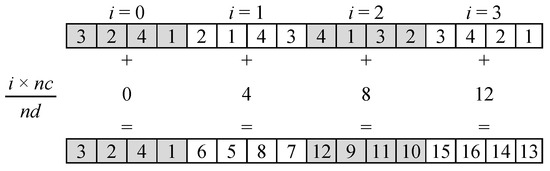 To randomly permute the individuals in demes, we apply the permutation made of offset random permutations with length . Here, we consider and .