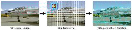 Deep learning-based methods also initialize an image by dividing it into regular grids [13] and use neural networks to predict classifications between pixels and regular grids, thereby generating superpixels, as shown in Figure 1. Regrettably, the existing deep learning-based superpixel algorithms remain imperfect. Some superpixel algorithms still employ iterative clustering to generate superpixels after extracting high-dimensional features. This approach enhances the accuracy of the segmentation process but concomitantly increases the time complexity by a factor of ten or even twenty relative to traditional algorithms. In contrast, a series of superpixel algorithms based on the fully convolutional network [14,15,16] markedly enhances the efficiency of superpixel segmentation. These algorithms are efficient and have low computational costs, but suffer from a significant loss of fine-grained details during the downsampling process in the encoding stage, as well as the upsampling process in the decoding stage. Notably, the impacts of these losses on the final prediction results is often overlooked, leading to a persistent failure to effectively improve the boundary attachment of superpixels.