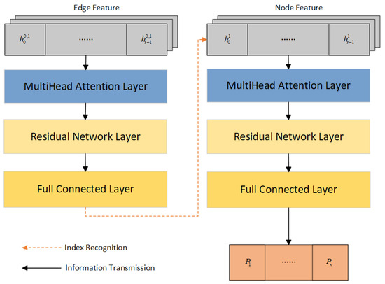 where and are the final embedding vectors of the node feature and edge feature, respectively. The node feature, the edge feature, and the final embedded vector will be output from the encoder to the decoder.