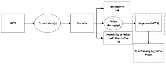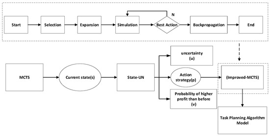 The Improved-MCTS is based on the uncertainty prediction of the State-UN about the current tree state. The action decides whether to continue with the simulation phase of the Monte Carlo tree search. If the current action is a stable action, then the search is immediately terminated and proceeds to the next phase; if it is not the optimal operation, then the simulation continues, and the structure of the algorithm is shown in Figure 11.