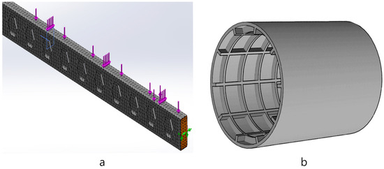 Such calculations are possible by means of nonlinear modeling in systems such as SolidWorks [25], which we have previously successfully used in the calculation of complex structures of mining and metallurgical complexes [2]. Existing calculation methods, when compared to experimental data, sometimes exhibit deviations reaching 70% [13,14,18]. The development of a stable perforated web and polybeam structures remains a crucial focus for more rational structural design.