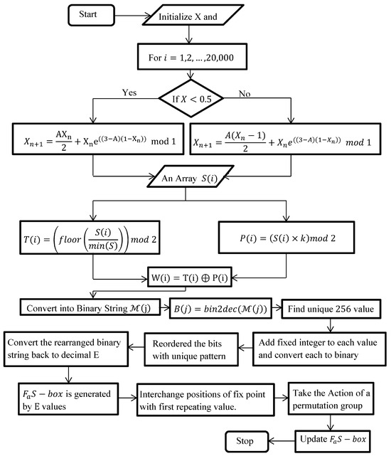 - The technique iterates the chaotic map between a pair’s changes to produce a binary output. Furthermore, we adjust these sequences to construct a solid substitution box (S-box), a crucial aspect of cryptographic systems.