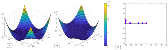 Three-dimensional single-objectivemodeling for filtration optimization: (a,b) optimal objective solution and (c) trace of the local maximum.