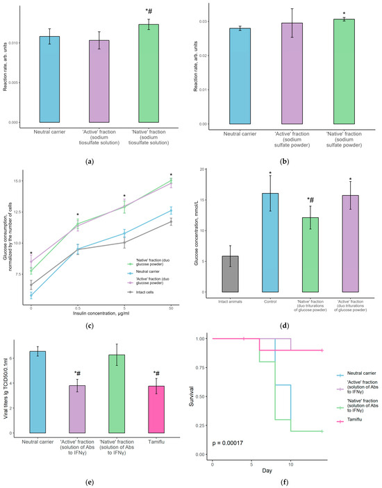 - Molodtsova, I.V.; Khimich, E.O.; Sosnenko, E.S.; Petrova, A.O.; Stepanov, G.O.; Don, E.S. Study of the Effects of Highly Diluted Sodium Sulfate and Interferon-Gamma. Bull. Exp. Biol. Med. 2023, 175, 327–330. [Google Scholar] [CrossRef]