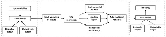 The three-stage DEA model framework for analyzing green innovation efficiency is illustrated in Figure 1.