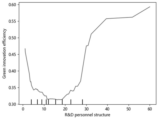 Secondly, unlike other linear regression methods, the random forest model adopted in this paper can not only provide rankings of influencing factors but can also visually demonstrate the nonlinear characteristics of influencing factors on green innovation efficiency by plotting partial dependence plots. This facilitates a deeper understanding of how various factors influence green innovation efficiency.