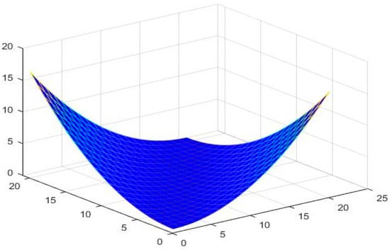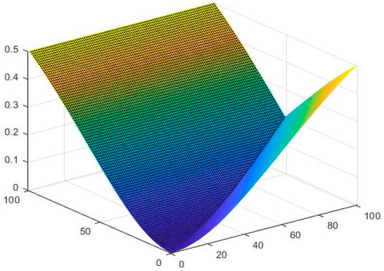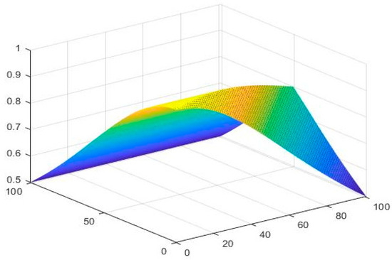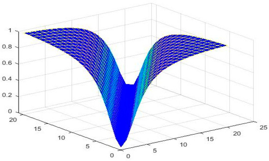 Therefore, all the conditions of Theorem 1 are satisfied, and is a neutrosophic contraction. There is a unique solution of the SLEs (16) in □