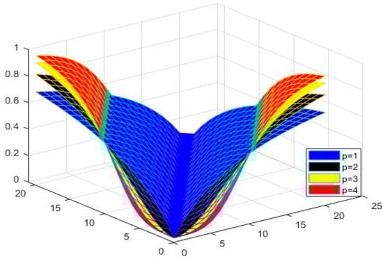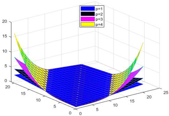 ([7]). Let be an arbitrary set that is not empty and be a positive real number. Then, a mapping is said to be -metric if it satisfies for all