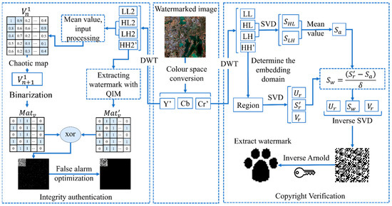 Due to the exponential growth of online services, the dissemination and acquisition of digital data have become increasingly convenient. Conversely, the likelihood of illegal copying, distribution, and malicious alteration of data has risen proportionally, and the problem of data abuse has become progressively more severe [1]. Remote sensing images, as typical geospatial data, are frequently employed to detect various geographical features of a region. They have important applications in environmental detection, risk assessment, urban planning, and military security [2,3]. Given the importance and sensitivity of remote sensing images, it is imperative to not only ensure the reliability of the data but also be mindful of their integrity during the use process. Consequently, there is a pressing requirement for a suitable security mechanism to enhance the protection of data copyright and authentication of its authenticity.
