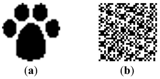 Before embedding the watermark, it is generally essential to employ encryption techniques to transform the watermark information into a chaotic state, thus enhancing the security of the watermark. The Arnold transform is a classic image scrambling encryption method based on the characteristics of the watermark digital matrix, it involves nonlinear mapping of pixel points within the watermark matrix to disrupt the watermark information, so as to disturb the information of the watermark, achieving an effect of encryption [33]. This method is widely used in watermarking research due to its simplicity, ease of implementation, and its ability to render the energy distribution of the watermarked image more uniform. For a watermark of , the Arnold scrambling Equation is as follows: