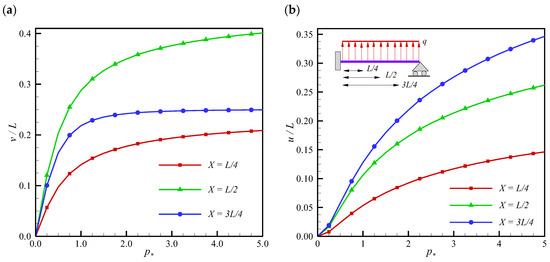 The curves of deflection ratio versus load parameter , (a) vertical deflection ratio , (b) horizontal deflection ratio [33].