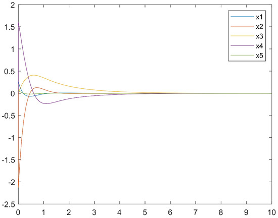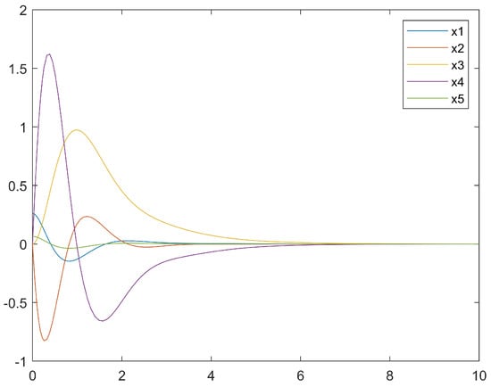 Again, the initial value of for the closed-loop system state is selected, and the response state simulated is illustrated in Figure 6.