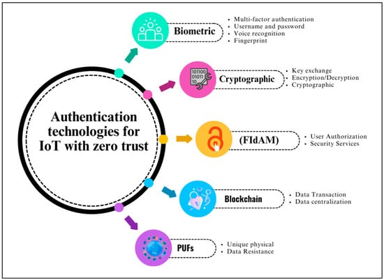 The essential elements of authentication technologies for zero trust in the IoT environment.