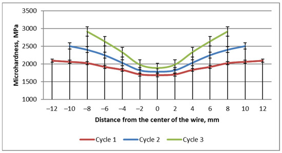 - The initial microhardness of carbon steel bars was 1515 MPa throughout their entire circumference. Microhardness was 2920 MPa in the surface zone, 2335 MPa in the neutral zone and 1890 MPa in the center of the bar after deformation by RSB-drawing method, and the diameter decreased from 30 mm to 17 mm. This symmetrical spread of the microhardness confirms the gradient microstructure.