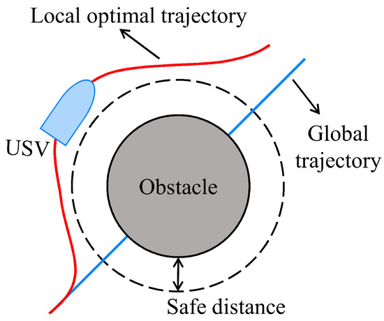 - A differential flatness-based trajectory-planning method is designed for the USV, which generates an obstacle avoidance reference trajectory in advance for the system to track and provides the high derivative of the reference inputs required for the system.