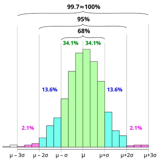 43. 68–95–99.7 Rule. Wikipedia. Available online: https://en.wikipedia.org/wiki/68%E2%80%9395%E2%80%9399.7_rule (accessed on 28 April 2024).
