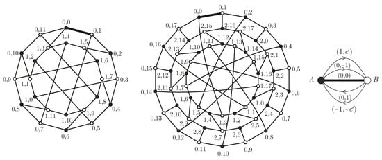 - Let us consider the mappings and from to itself. Then, let us first check the defining relations in (1): we have , , andIn order to prove that and are automorphisms, let us represent the vertices adjacent to i as and for i even, and for i odd. Then, the following properties are obtained:
