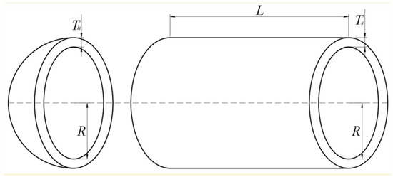 The pressure vessel design problem aims at minimizing the cost of raw materials for a pressure vessel [45]. As shown in Figure 12, four structural parameters are required to be optimized, including the thickness of shell (), thickness of head (), inner radius (R), and length of headless cylindrical section (L). The mathematical formulas are described in Equation (18).
