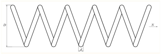 The tension/compression spring design problem aims to minimize the spring weight by optimizing three variables with four inequality constraints [48], as shown in Figure 15 and Equation (21). The decision variables are mean coil diameter (D), wire diameter (d), and the number of active coils (N).