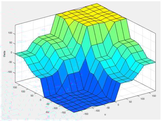 Figure 11 gives a graphical representation of the proposed fuzzy system’s effectiveness in generalizing the relationships between error, change in error, and motor position (angle) for motor control. This interdependence is illustrated through a fuzzy system rules surface. The rules surface suggests a correlation between the controlled motor position and both the error and change in error.