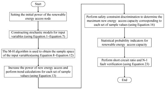 Based on the above analysis, a set of probabilistic assessment methods for renewable energy consumption capacity and an assessment flow system for system security and stability analysis can be derived, as shown in Figure 3.