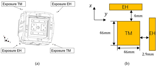 (a) The spacing between the TM and the EH in the x and y directions. (b) The illumination method of the inertial sensor.