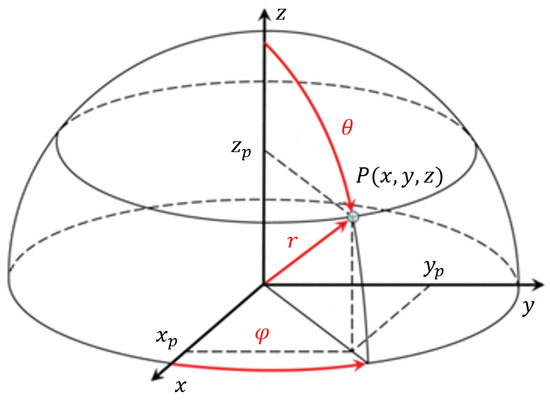 The velocities of the photoelectron in the x, y, and z directions are defined as ,, and , respectively, and can be calculated as follows: