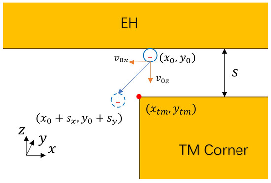 Let be the coordinates of the corner position of the TM. If the position of the photoelectron emission on the EH satisfies the conditions in Equation (12), the photoelectron meets the transfer conditions from the EH to the TM in the x and y directions.