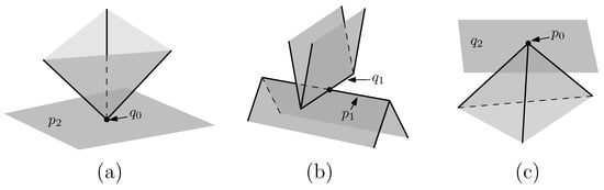 - Dobkin, D.P.; Kirkpatrick, D.G. A linear algorithm for determining the separation of convex polyhedra. J. Algorithms 1985, 6, 381–392. [Google Scholar] [CrossRef]