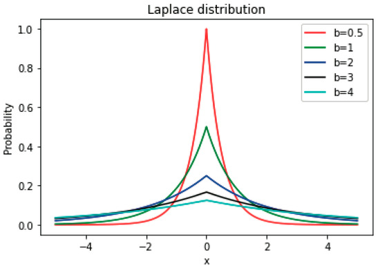 The noise N obeys the Laplace distribution , where , and satisfies Equation (1) after noise addition, which results in the probability density function of the noisy data conforming to the Laplace distribution: