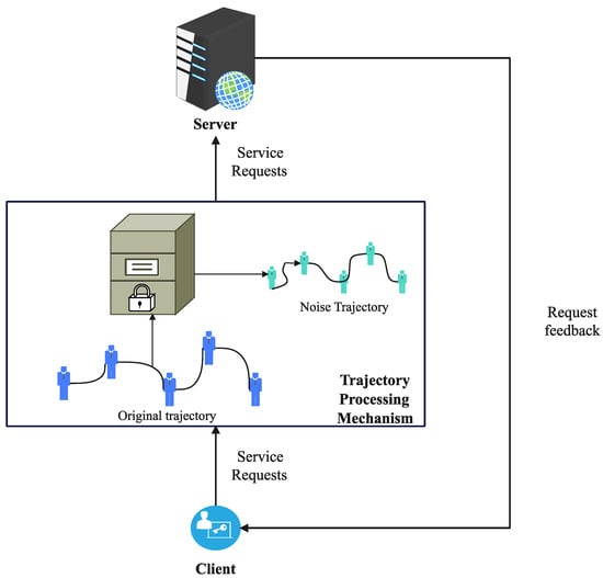 The Internet industry, mobile communications, cloud computing, the Internet of Things, and other emerging technologies are rapidly developing, and smart devices with positioning functions are rapidly becoming popular. Human beings have opened a new era with intelligent interconnection and information sharing as the main symbols. These new intelligent experiences are mainly based on location-based services (LBSs), which provide specific and precise location-related services to provide users with convenient and favorable experiences. These location and trajectory data contain sensitive and complex information with essential commercial and immeasurable academic value in urban planning, disaster warning, and other public security [1,2]. Location information is a publicly available resource, but malicious attackers with ulterior motives to connect it with the relevant users can lead to serious privacy leakage problems and even crises for users’ personal and property safety.
