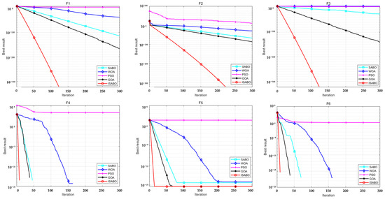 In this study, six test functions (where F1–F3 are single peaks and F4–F6 are multiple peaks) [42] as shown in Table 2 were used to verify the solution capability of the ISABO.