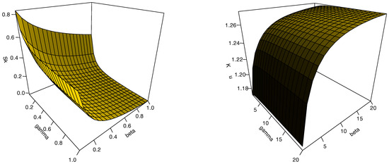 Equations (28)–(30) can be solved numerically, using R software 4.2.2., to obtain and .