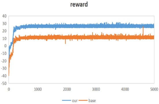 We compared the rewards obtained from two different methods. The experimental results indicate that the method proposed in this paper yields more secure and efficient decision-making outcomes. Figure 5 illustrates the progression of rewards as the agent continues to learn. As training progresses, the reward value acquired by the agent rises. At 500 training episodes, the reward of the agent stabilizes.