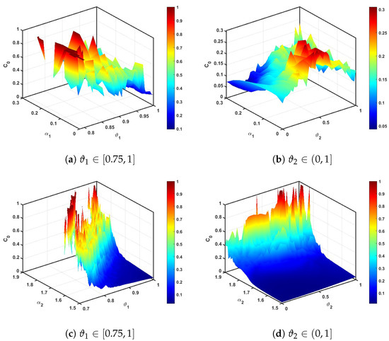 Figure 10 shows the complexity of the incommensurate discrete memristive system (11). Specifically, Figure 10a versus for while Figure 10b versus for where are versus parameter for . Meanwhile, Figure 10c are versus parameter for where versus for and Figure 10d versus for . The systems’ higher complexity is confirmed by the complexity results. These outcomes are consistent with the previously mentioned findings.