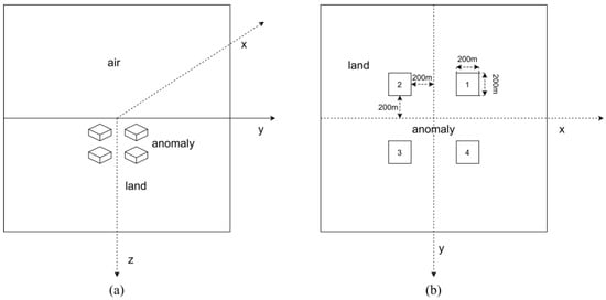 Geometric structure of the composite anomaly model. (a) y = 0 m and (b) z = 200 m.