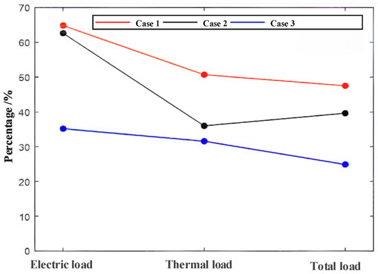 From Table 3, it can be observed that the benefits, from highest to lowest, are as follows: Case 3, Case 6, Case 4, and Case 5. In comparison to Case 5, Case 6 reduces the total cost by 2508 yuan and increases user satisfaction by 9.24%. In comparison to Case 6, Case 3 reduces the total cost by 2071 yuan and increases user satisfaction by 5.16%. Therefore, considering a greater variety of load types not only reduces the overall system cost but also improves user satisfaction. The main reason for these results is that in cases where only transferable loads or substitutable loads are considered, the PIES can only transfer or substitute a portion of the load when affected by dynamic price changes. A single type of load is unable to fully utilize the flexible demand response capability. However, when both transferable and substitutable loads are considered, the complementary characteristics of different forms of demand response resources can enable the system to have control over both the timing and form of load energy consumption. This allows for more flexible adjustment of load demand and improved economic efficiency while meeting operational constraints. Case 3 also considers reducible loads, allowing for the reduction in some loads during high-price periods, further enhancing peak shaving capability and economic performance of the system. Therefore, considering demand response with various types of loads can lead to greater benefits and improvements.