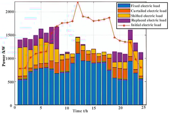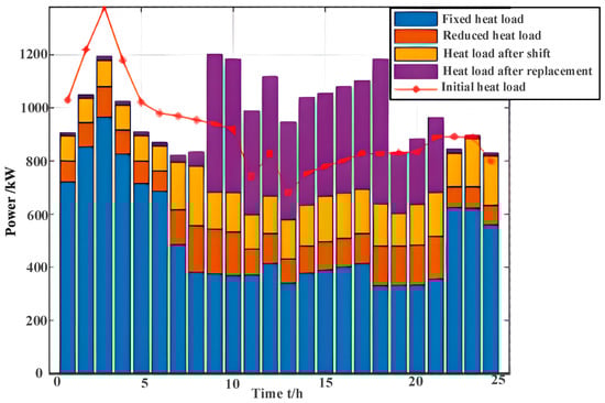 Taking all the above formulas into consideration, we can obtain the values of electricity/thermal load after reduction and transfer for each period, as shown below.