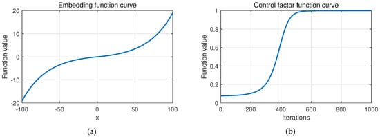 The embedding function curves (a) and control factor function curves (b), respectively.