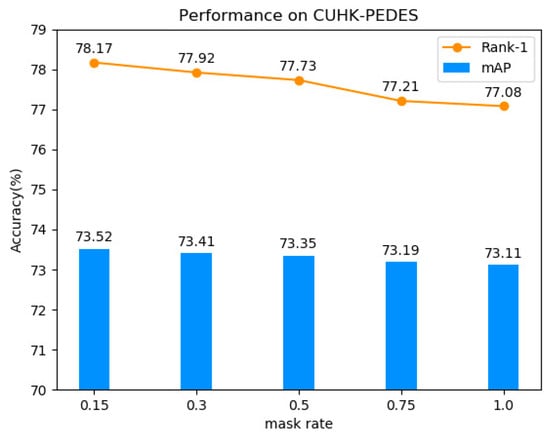Comparison of MLM model results with different mask rates on CUHK-PEDES.