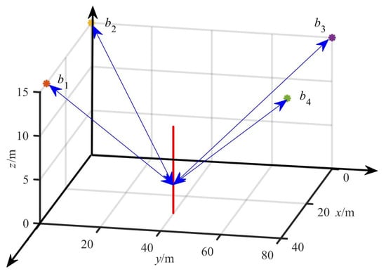 According to the theoretical analysis model shown in Figure 2, it can be seen that the rope length vector between the damage detection platform P and the guide pulley bi can be represented as