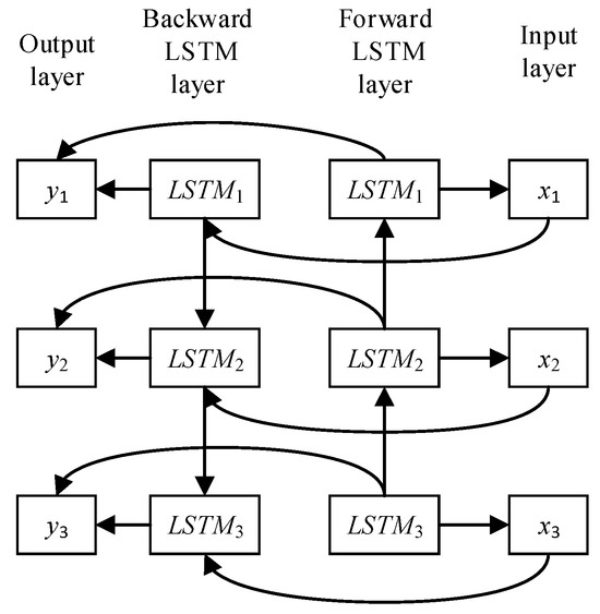 In this study, the LSTM network is enhanced in two steps to improve its predictive performance and reduce errors. The first step involves replacing the standard unidirectional LSTM network with a Bidirectional LSTM (BiLSTM) network. The second step incorporates an attention layer into the BiLSTM architecture, forming a BiLSTM–attention network. The details of these two improvements are as follows: